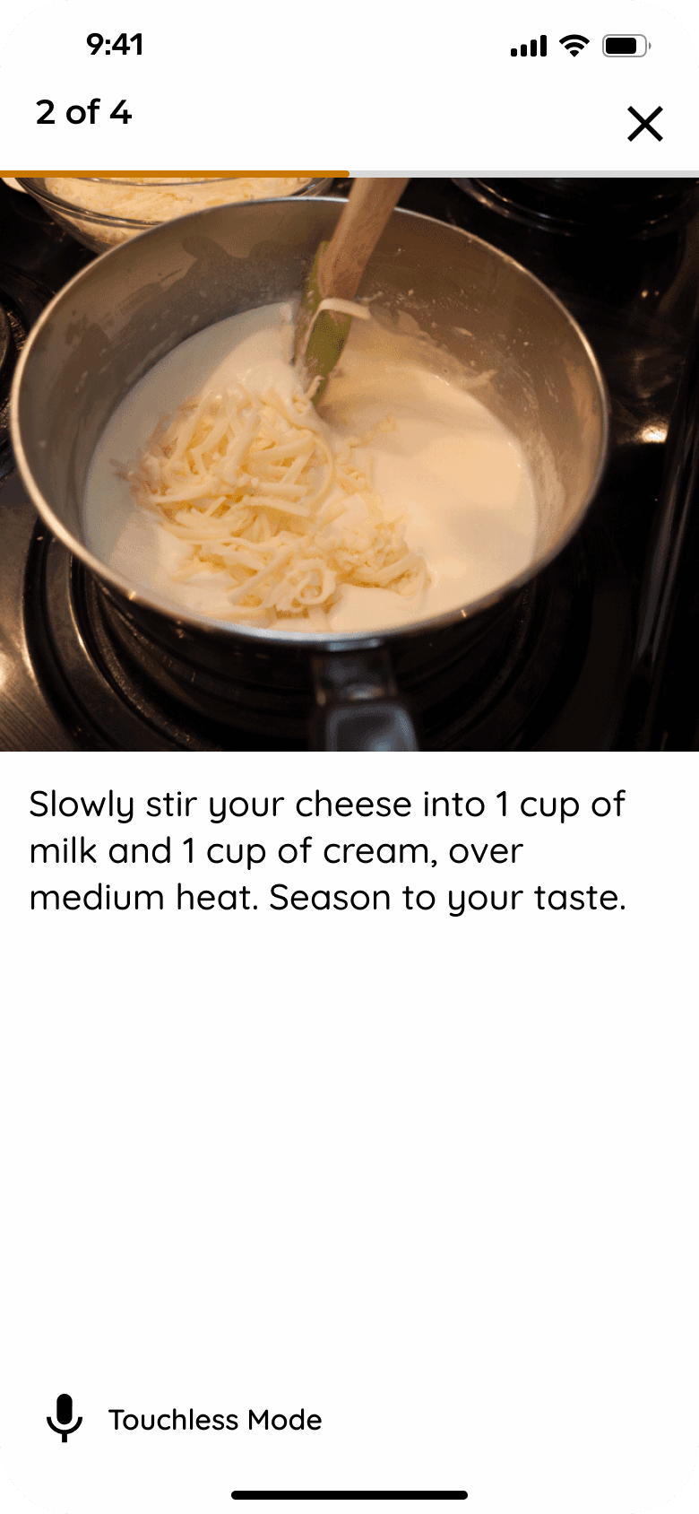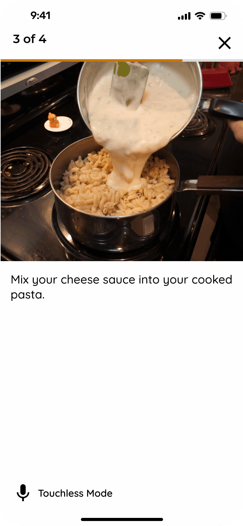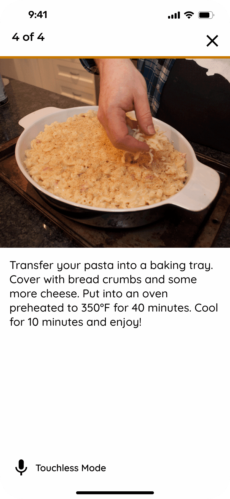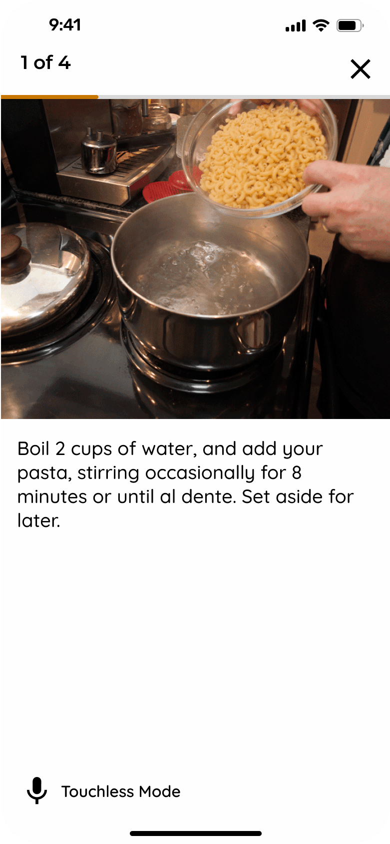 Easy to follow steps accompanied with visuals and videos. Enter "Touchless Mode" for voice controls if your hands aren't free.