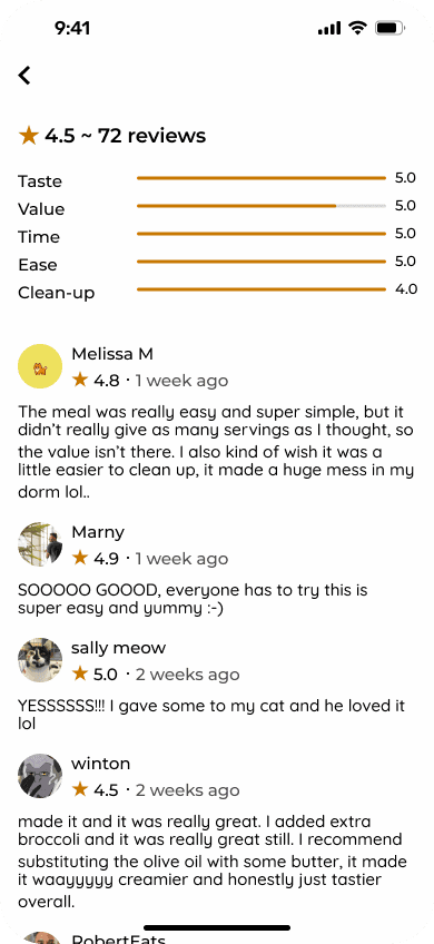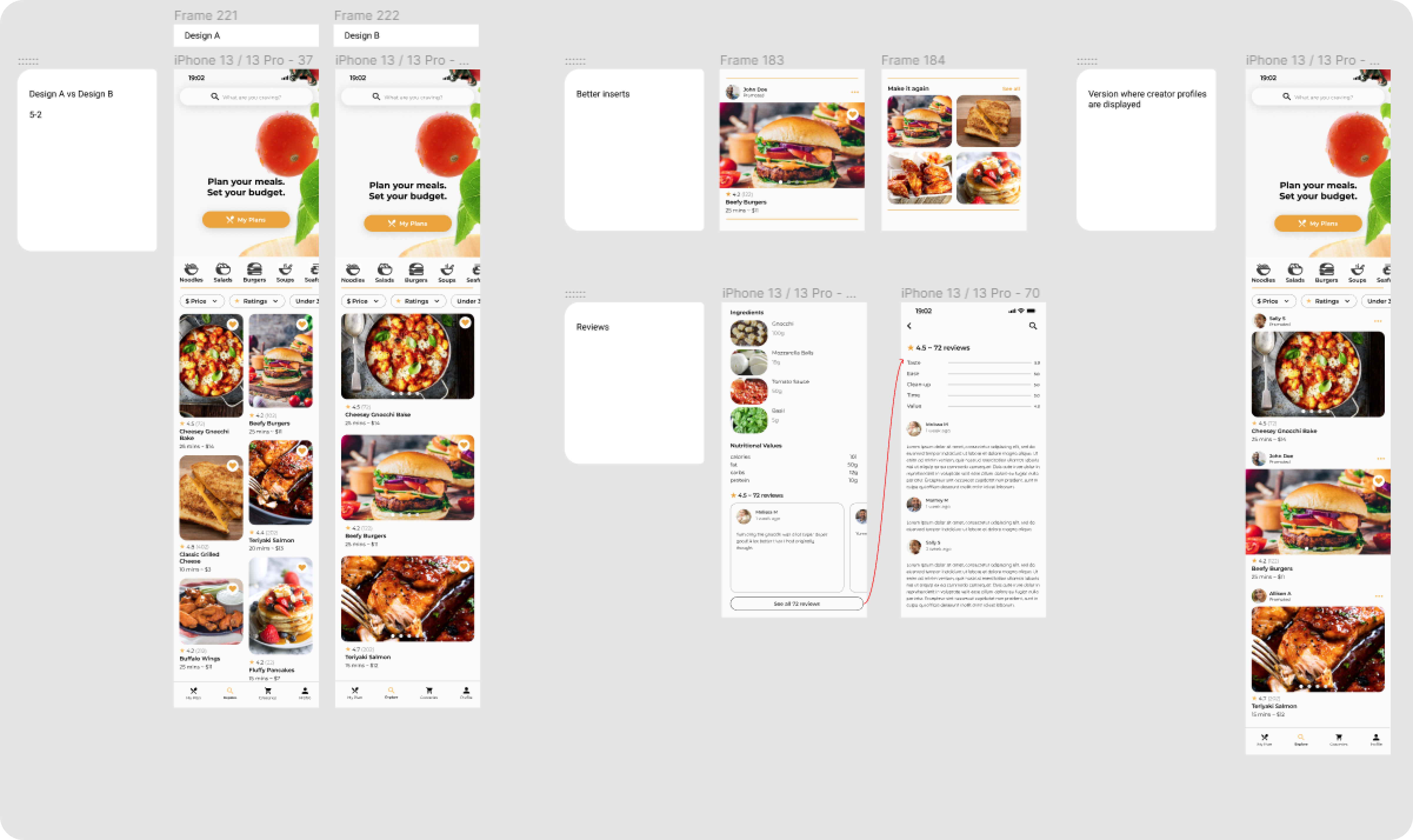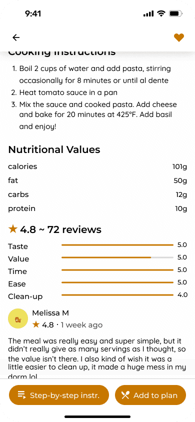 Specifying meals for each day of a plan had similar issues to the grocery features. It didn't align with the target audience's needs and became too complicated for casual users.