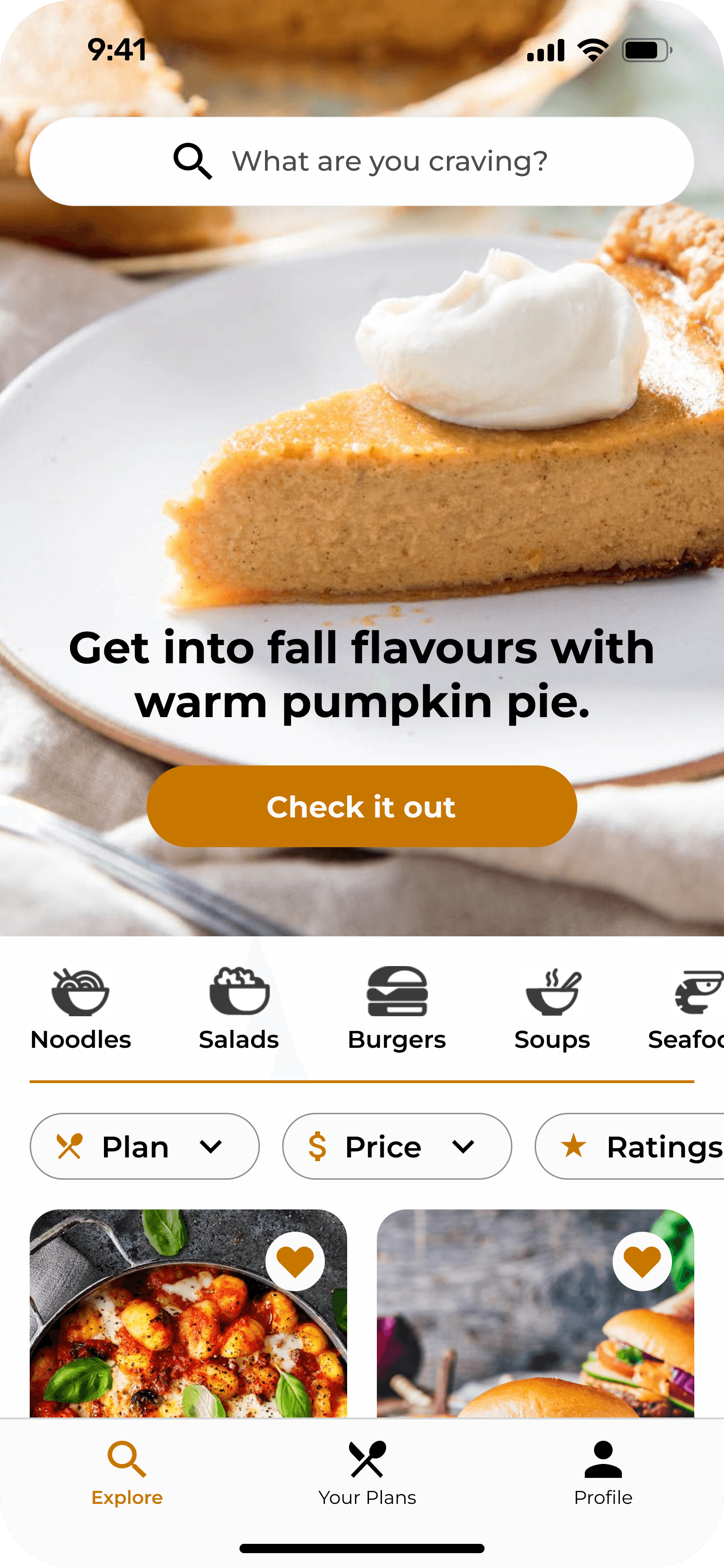 Poster at the top of the explore page for showcasing popular recipes, seasonal eats, for first time user onboarding, and more!