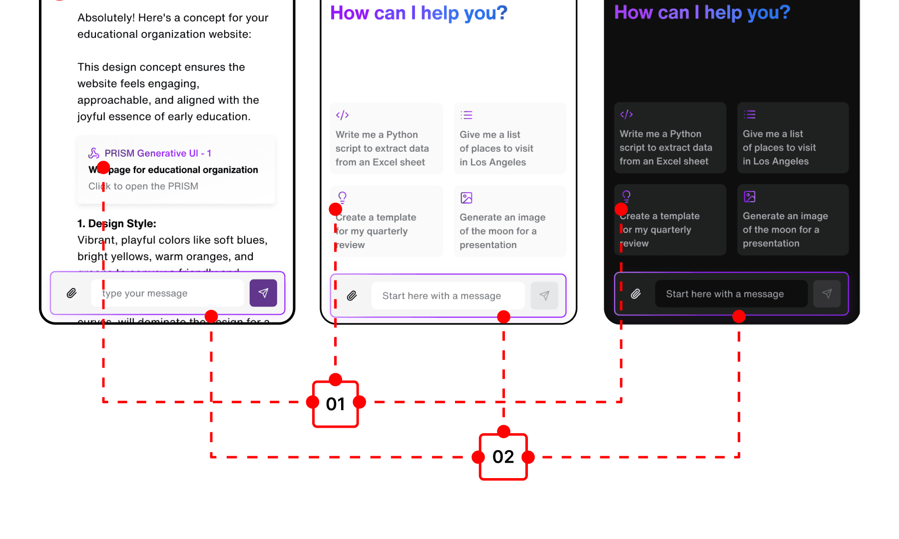 Final designs and prototypes showcasing the refined visual and interaction system in action, highlighting workflows and features.