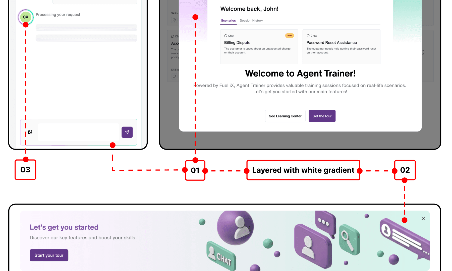 WillowTree (Now TELUS Digital) is a digital product consultancy working with large, complex organizations across industries. During my time there, I worked within Fuel iX, a multi-product ecosystem where teams shipped in parallel and design maturity varied across products. I worked on new workflows for Copilot, an enterprise AI chat, and tackled long-standing visual and interaction inconsistencies cross-product