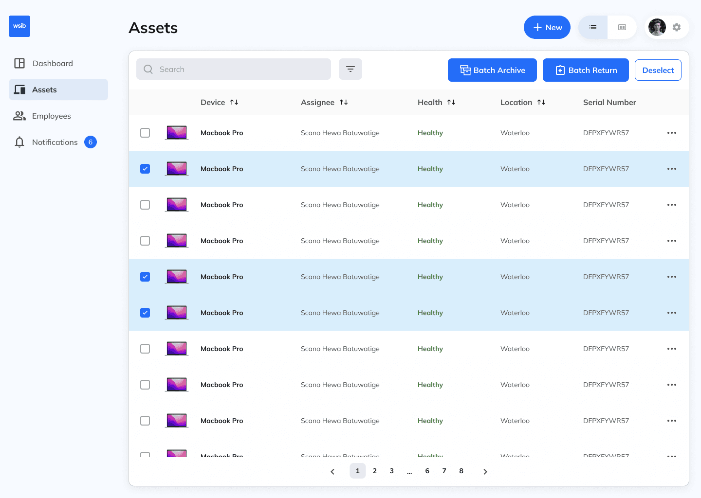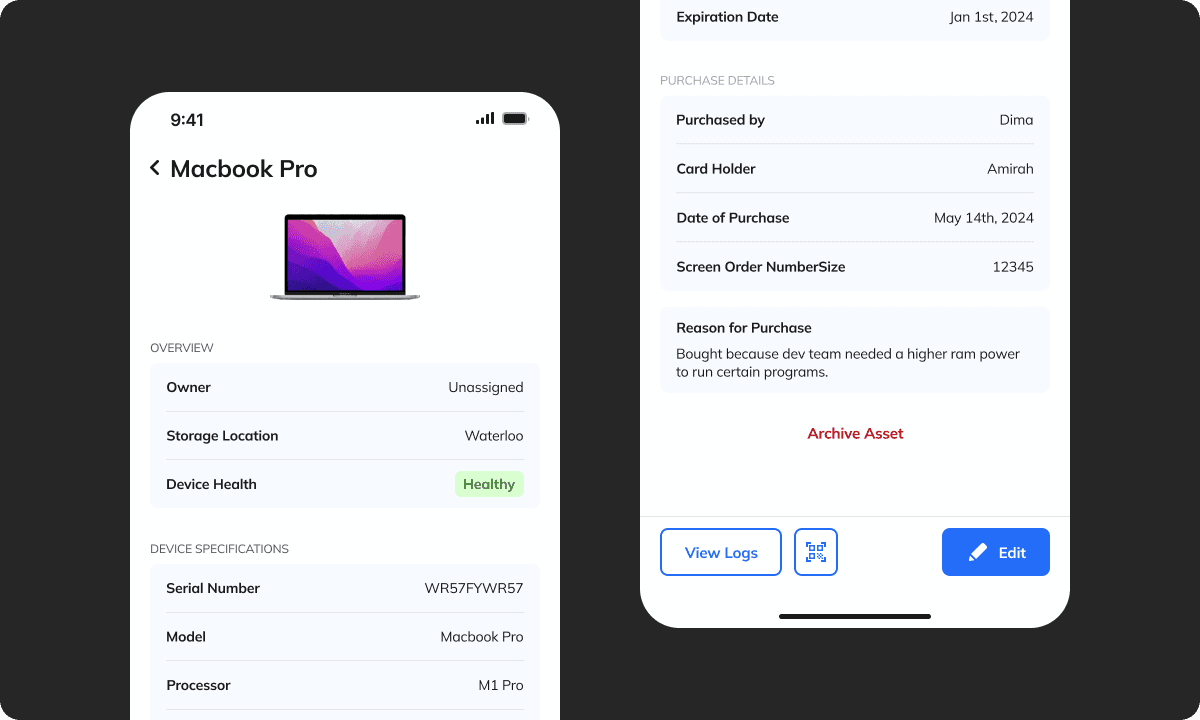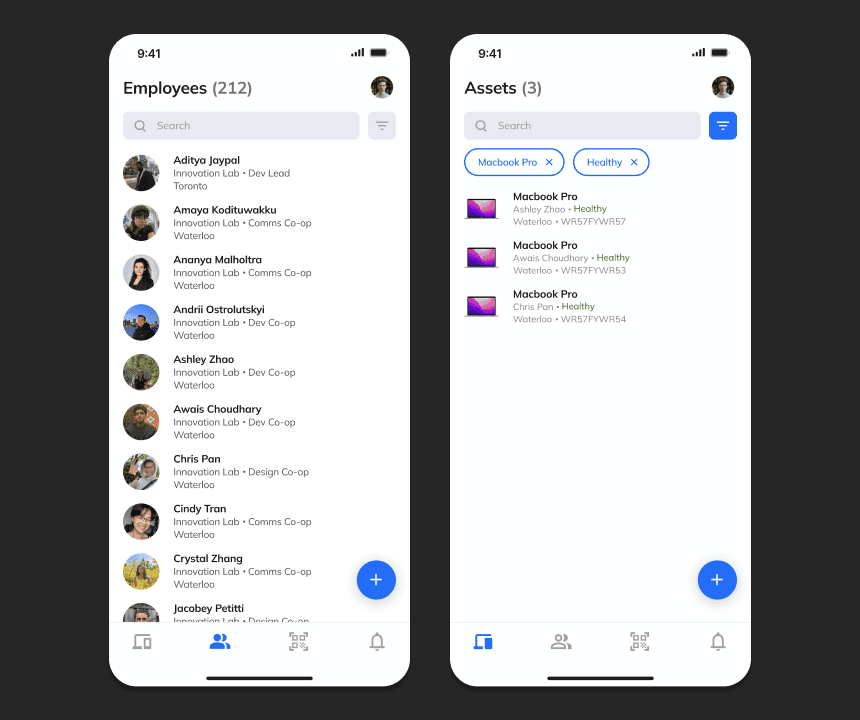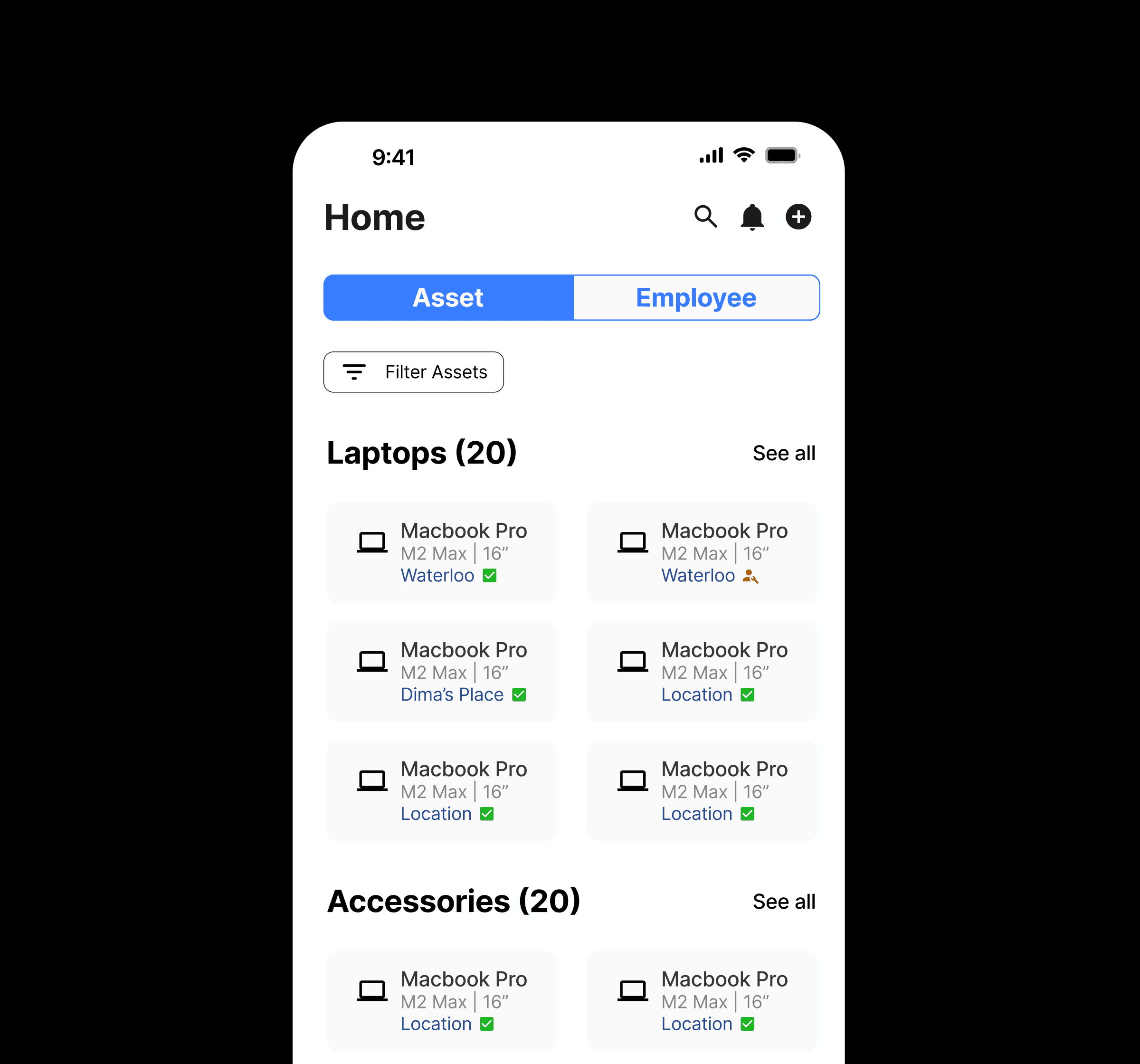 Assets are now shown in a visual list, making them easier to scan and automatically sorted alphabetically. Search functions are grouped for better discoverability, the add-item button is more prominent, and notifications have been moved to the tab view for a cleaner, more intuitive experience.
