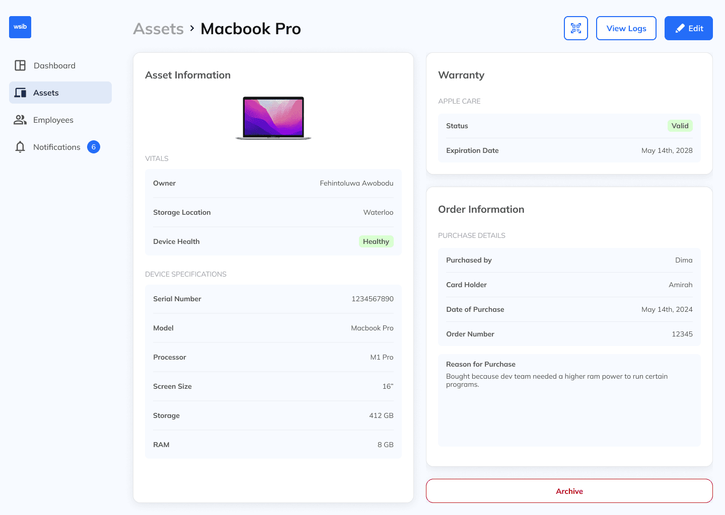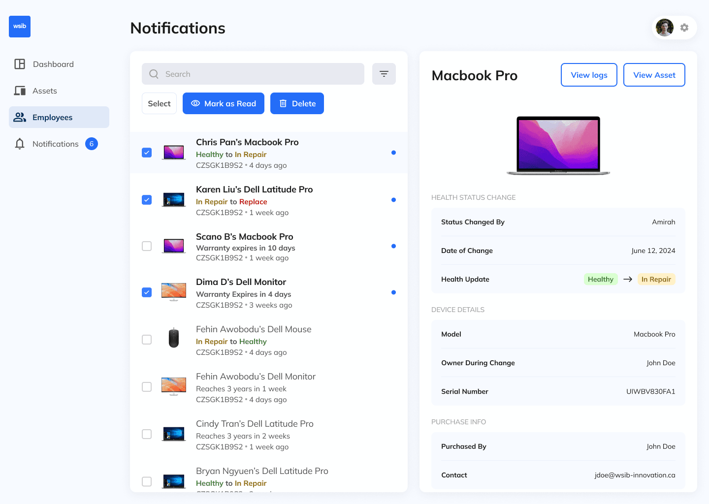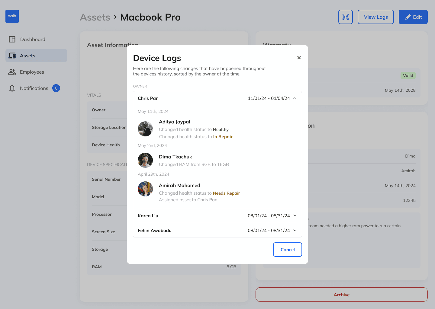 Assets are now shown in a visual list, making them easier to scan and automatically sorted alphabetically. Search functions are grouped for better discoverability, the add-item button is more prominent, and notifications have been moved to the tab view for a cleaner, more intuitive experience.