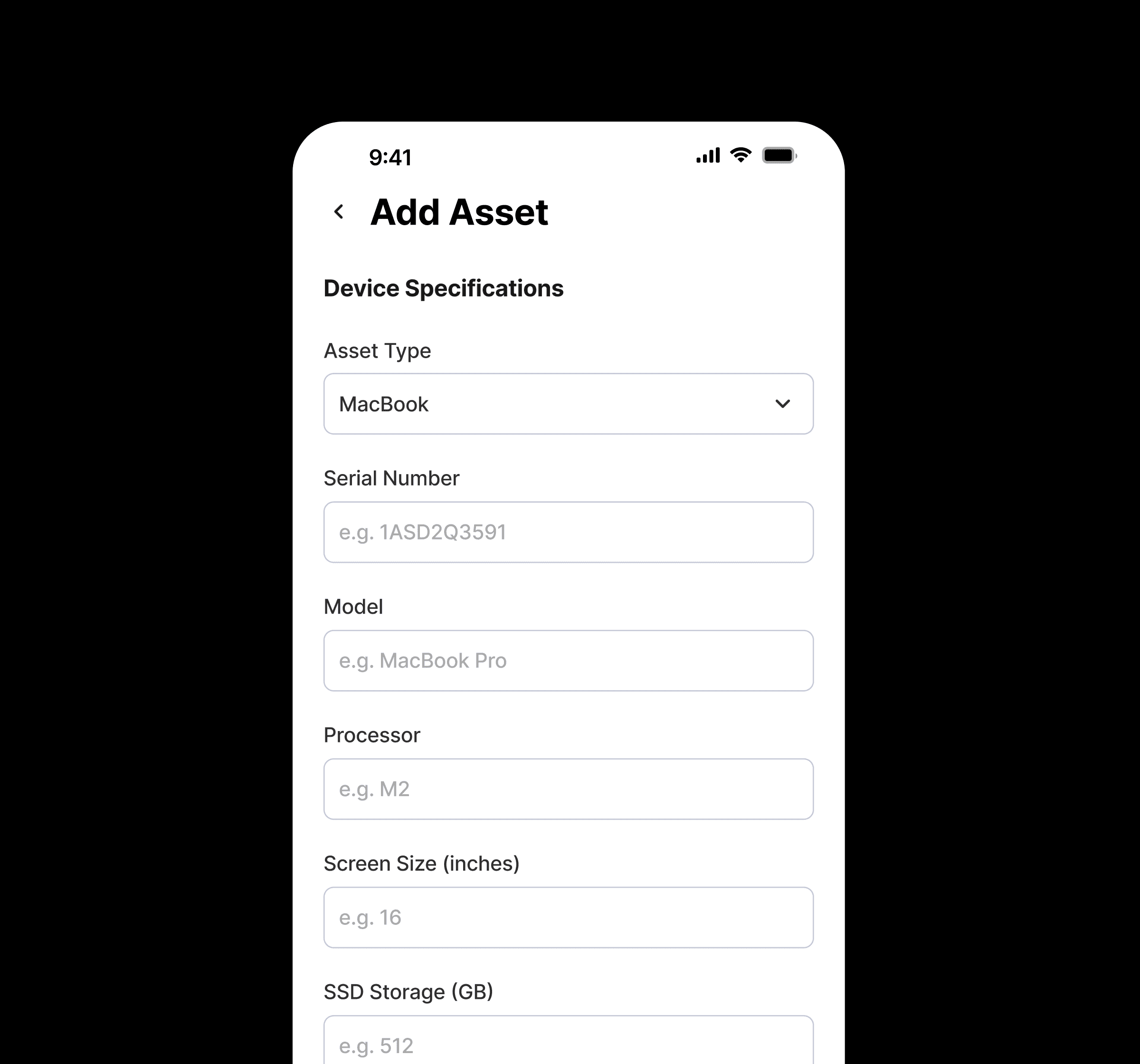 Asset entry was broken into steps, grouping fields by relevance and requiring only essential information upfront. Less critical details can be added later, and all inputs were converted into systemized cards.